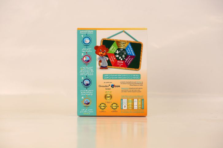 - بوجبتين من بريننتوغولد المدعم يحصل الطفل على حاجته اليومية الكاملة من الفيتامينات والمعادن مما يضمن نمو صحي لجسمهم الصغير