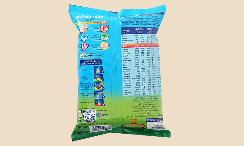 - مدعم بتركيبة Active GRO التي تضم أكتر من 21 فيتامين ومعدن الضروري لبناء جسم صحي لأطفالنا بالإضافة لل DHA اوميغا 3 الضروري لتطور المهارات الذهنية والحركية والبصرية للطفل